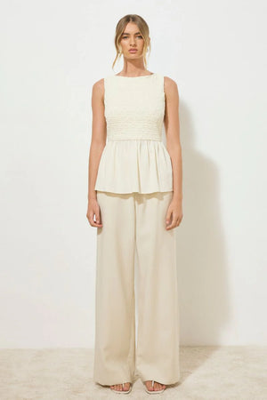 - Featuring gathered hem peplum in non-stretch woven fabrication