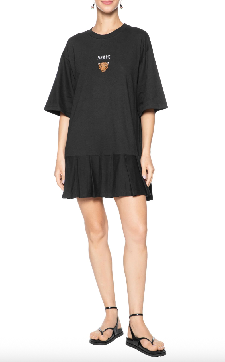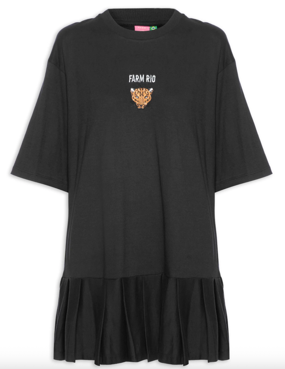 Farm Rio VESTIDO PLISSADO ITACARE PRETO $220.00 USD