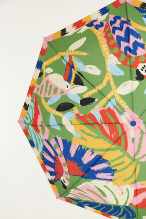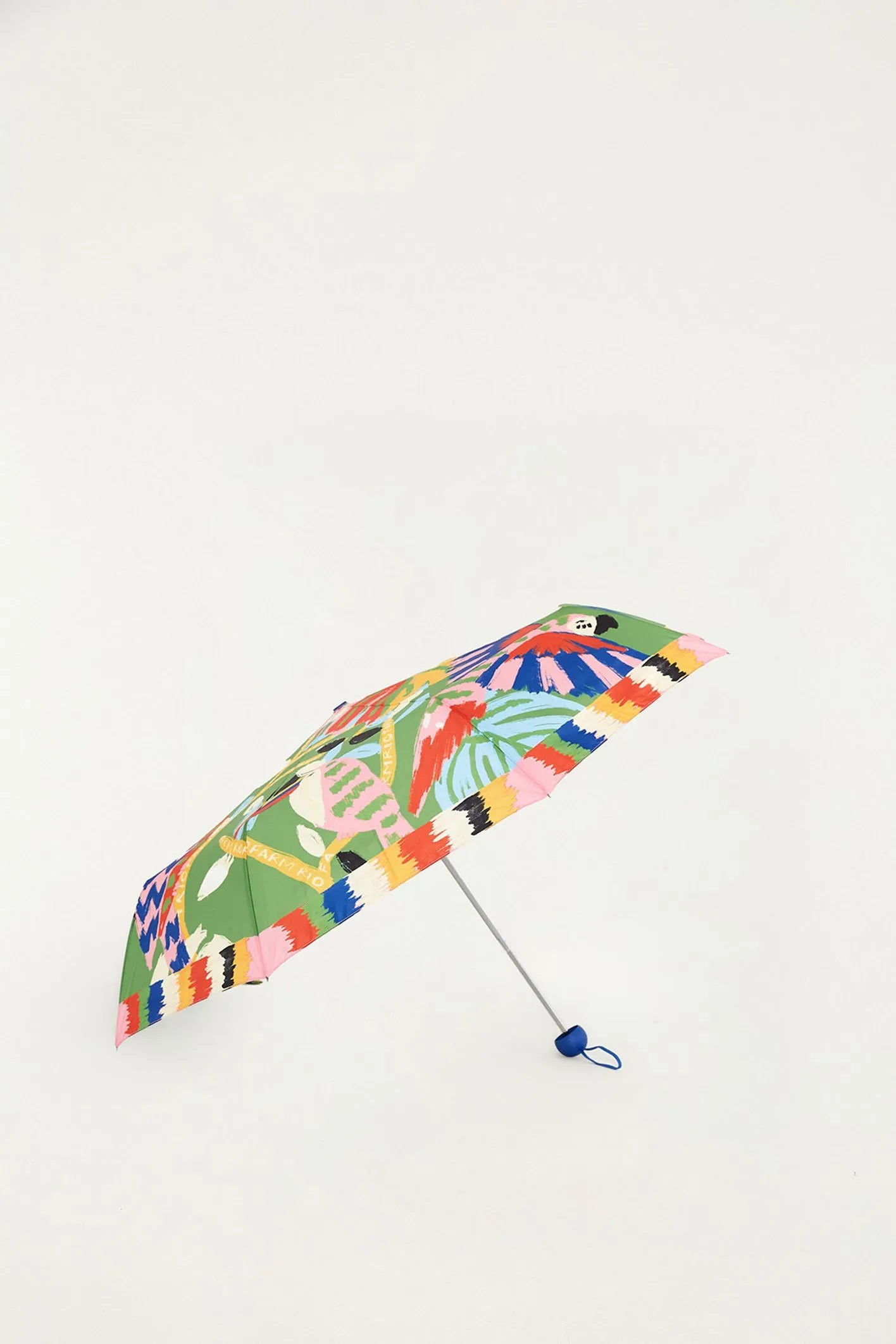Chuá umbrella, Bosque dos Pássaros (Birds' Forest). Face the rainy days with practicality, safety, and our signature style! The Chuá umbrella is the ideal accessory to keep you dry and in the "no bad weather" spirit. Compact and lightweight design, easy to store in your bag, backpack, or glove compartment. Water-resistant material. Quick and easy opening. Available in various prints, choose the one that best suits your style. What you don't wear, you live. FARM Etc has arrived, the lifestyle brand of FARM Rio.