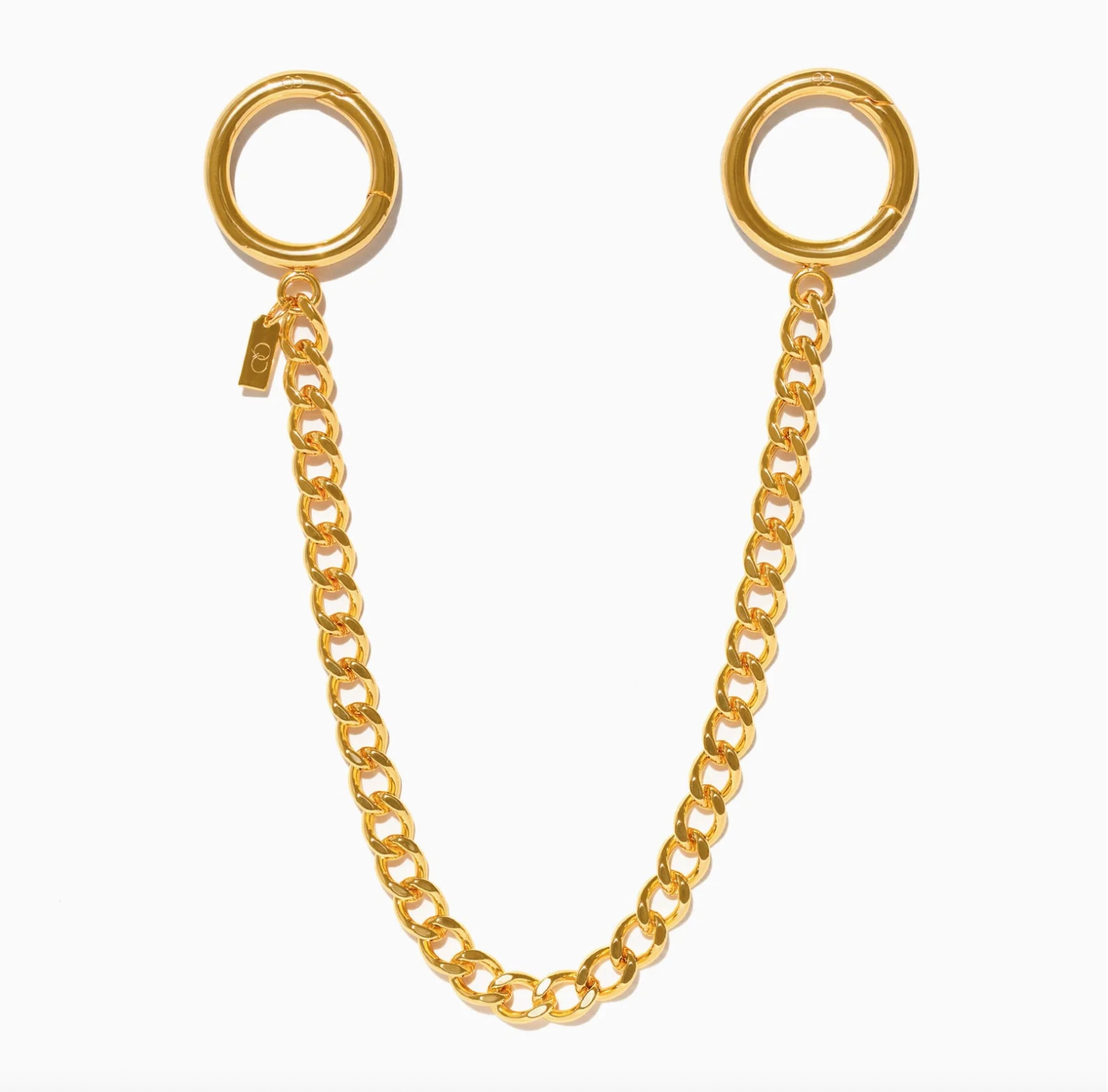 Level up your bag game with the ultimate charm-collecting sidekick. This sleek gold-plated chain with dual clasps is your ticket to endless accessory possibilities – think of it as your bag's personal jewelry collection. Clip it on your favorite tote or crossbody, then load it up with all the charms that tell your story. Crafted with 18k gold plating, it's the perfect base for creating a totally customized look that's uniquely you.