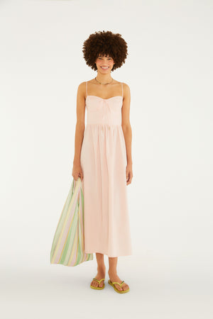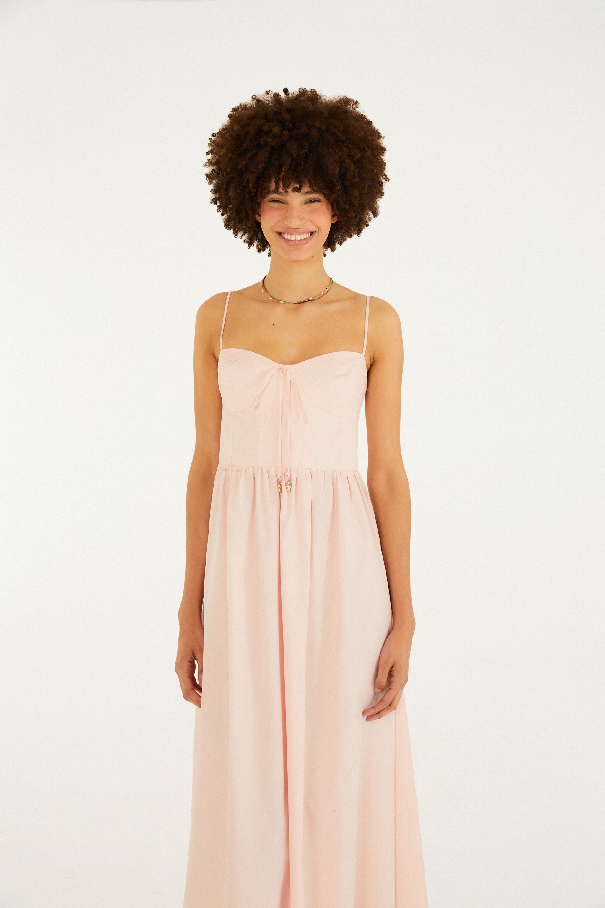 Vestido de tirantes con corsé. Con escote contorneado y cierre de lazo frontal, le da un toque casual a tu colección. Los tirantes ajustables garantizan comodidad y personalización. Perfecto para ocasiones diurnas y salidas relajadas. FARM RIO Original - Verano 26.
