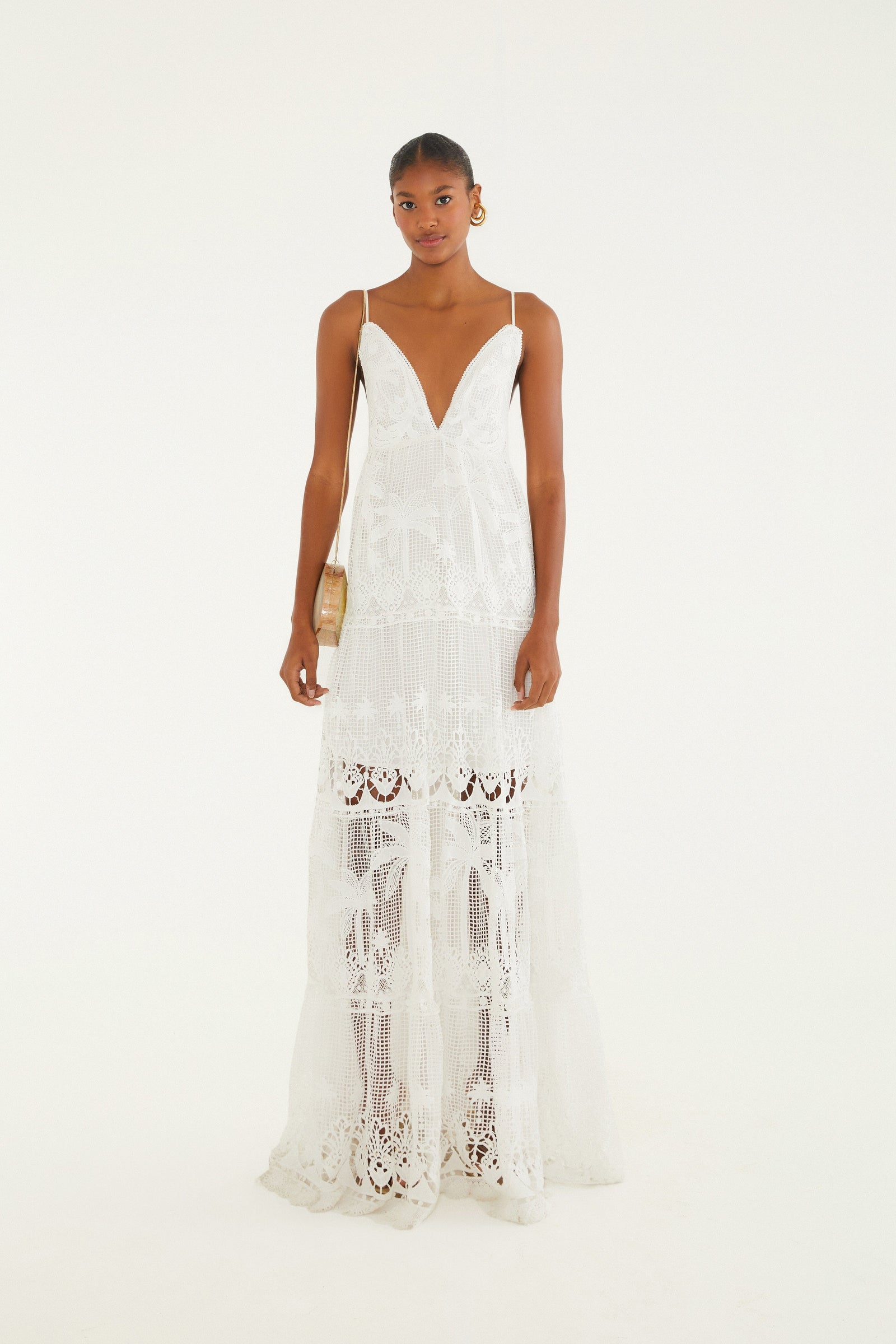 FarmRio Vestido largo de guipur Odara $414.00 USD