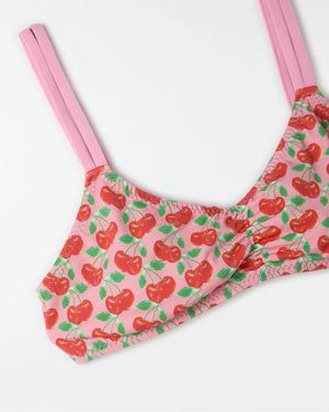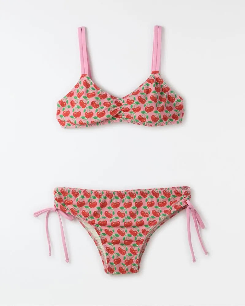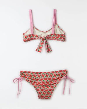 Bikini in Cereja Doce print with elastane-mix lining to guarantee comfort. The clothing, part of the FARM Futura line, has a model that mixes practicality and style, with double top, front franzido, adjustable mooring on the shores, as well as the sides of the calcinha. Perfect to enjoy the summer. Its unique print elevates the originality of the piece, ideal for days at the beach or pool.