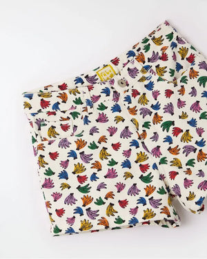 Printed Sarja Shorts, part of the FARM Futura line. In the five pockets model, it offers comfort without losing style. Possui abotoamento, waist loops, straps on the sides and stitched cutouts. Its model allied to a print of colorful bananas is ideal for walks in the park, relaxed afternoons or where your creativity rises.