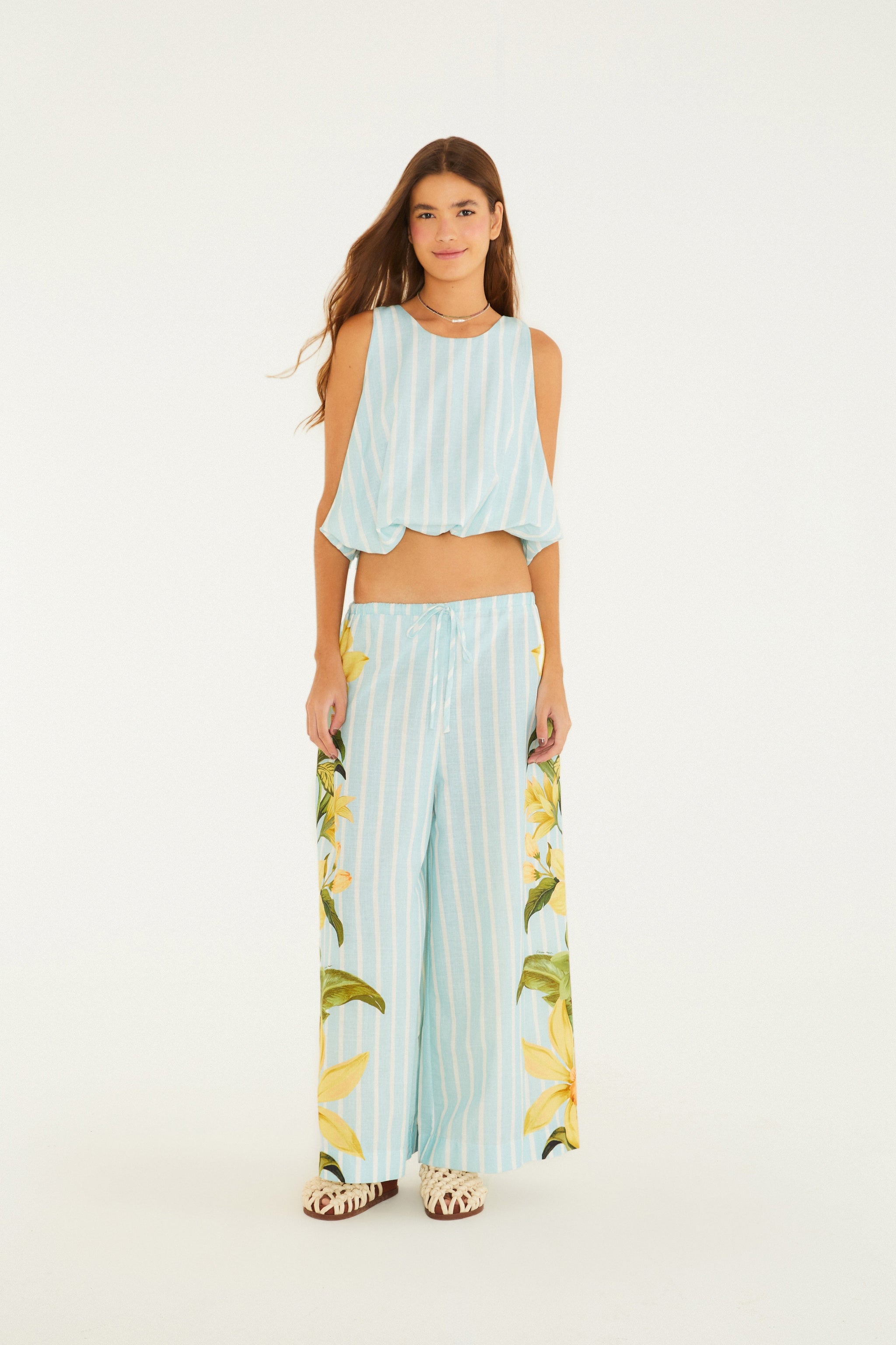 Blusa Balonê Listra Alexia Azul con corte baloné moderno que aporta un frescor único al guardarropa. Su escote redondo armoniza el look ligero y fluido, ideal para días casuales o ese encuentro especial. Los detalles en la espalda suman un toque de encanto delicado y permiten combinaciones versátiles. FARM Rio, Colección Carioca – Invierno 26.