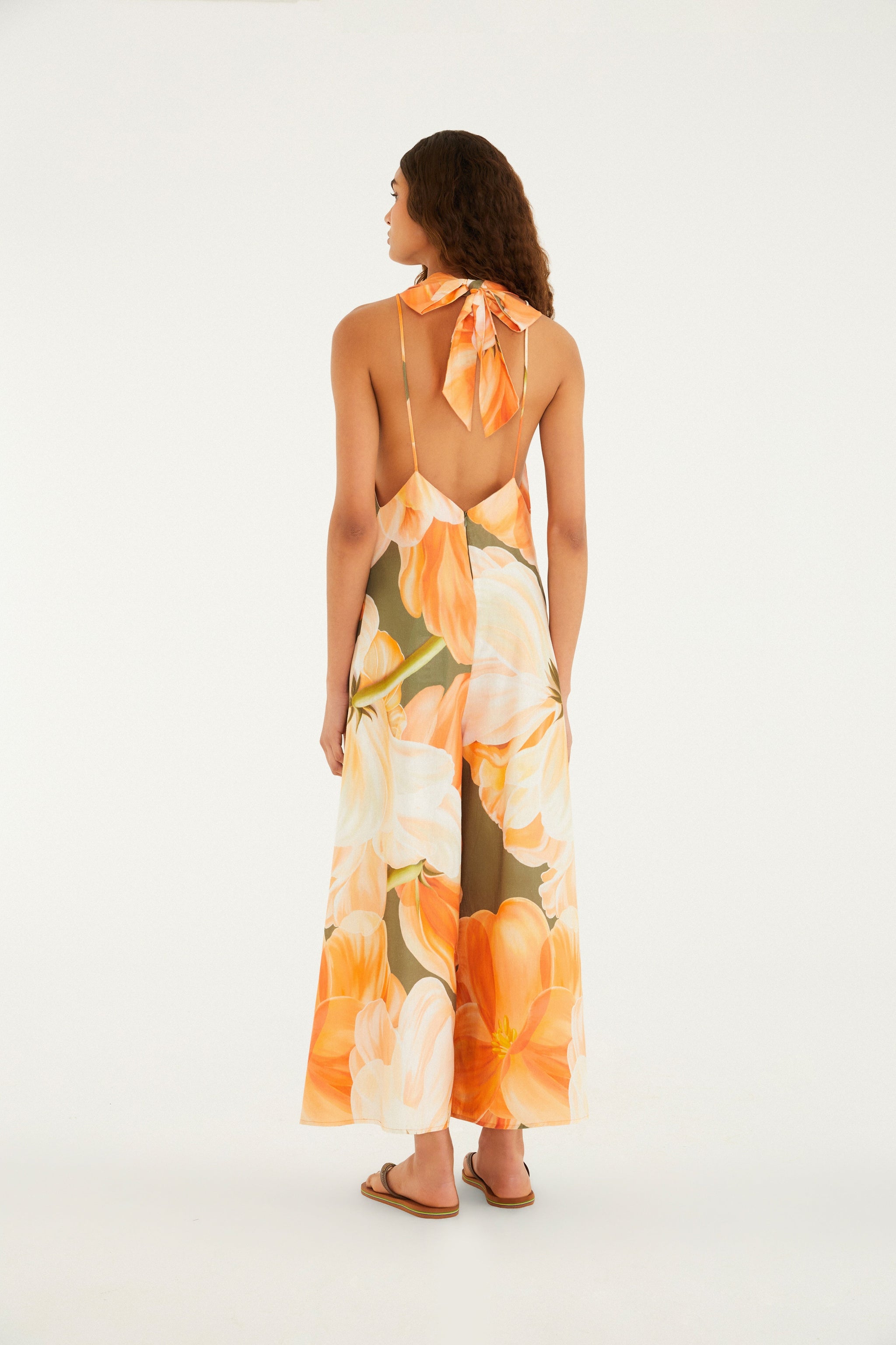 Enterizo Amarilis. Con escote profundo y tirantes finos con amarre en la espalda, aporta un toque único al look. Ligero y fluido, es perfecto para ocasiones que piden comodidad y estilo, desde un paseo junto al mar hasta un encuentro relajado. Su silueta amplia brinda libertad de movimiento para disfrutar cada momento. FARM Rio, colección Carioca - invierno 26.