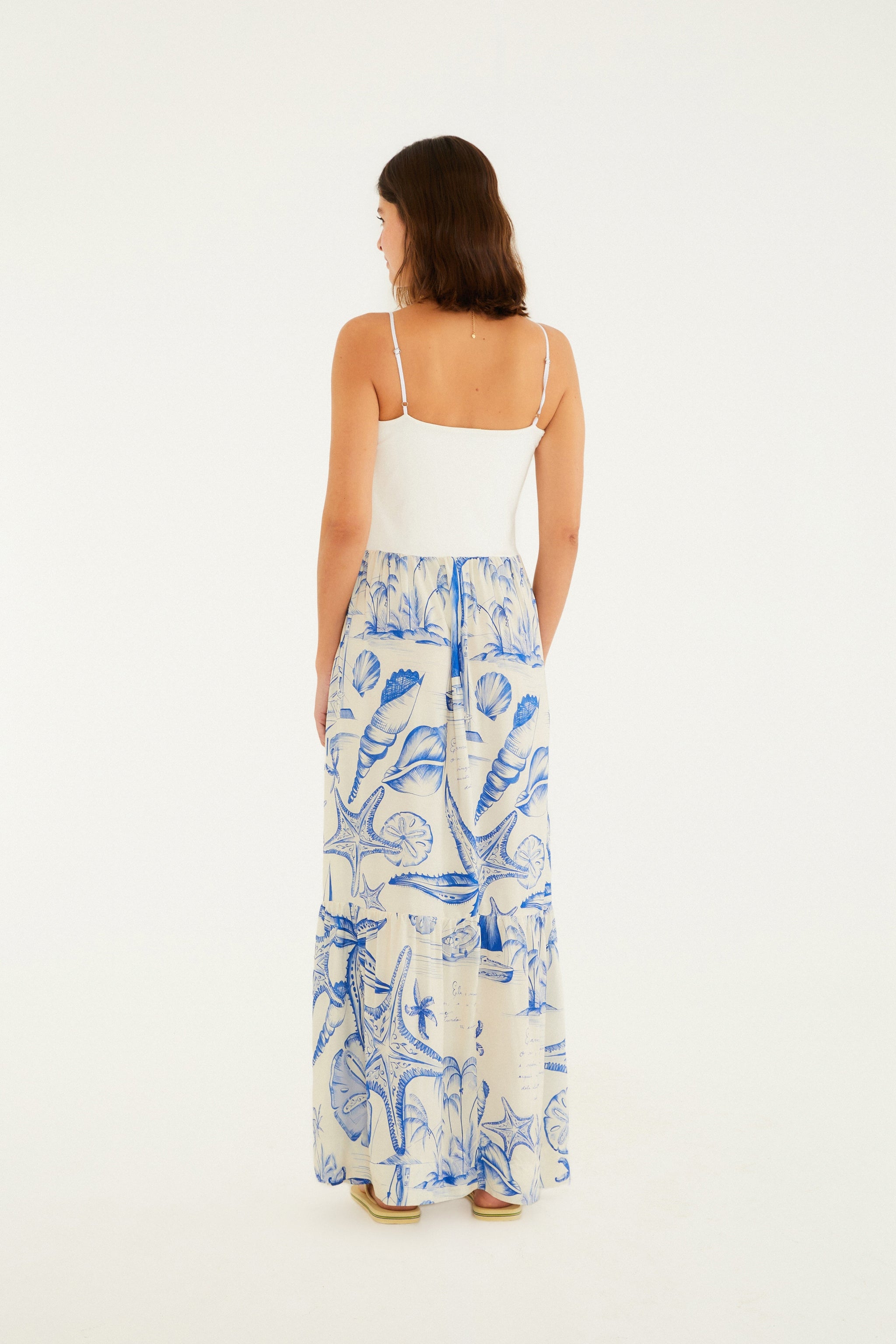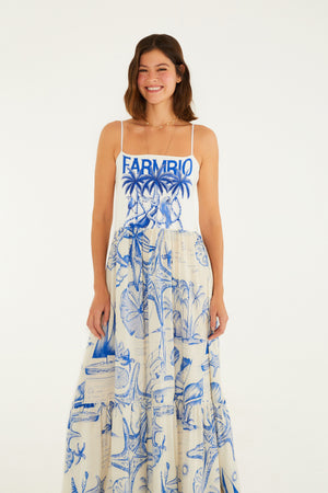 Vestido midi de cuerda y pájaros de Farm Rio. Con tirantes finos y un escote delicado, aporta ligereza a la prenda. Su diseño suelto y fluido sugiere movimiento, perfecto para días informales o reuniones especiales al aire libre. El toque creativo de cuerdas y pájaros transforma lo inesperado en encantador. FARM RIO Original - Verano 26.