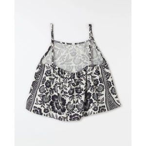 Tank top with B&W designs from the Jardim Romance print. The clothing, part of the FARM Futura line, has adjustable straps and a straight neckline, ensuring a perfect fit. Its charm and style bring freshness, ideal for casual days or outdoor events. The lightweight fabric piece provides comfort and freedom of movement. Pair with skirts, pants or shorts to express your style.