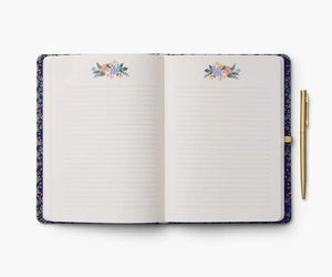 Designed for note takers and journalers, this hardcover journal comes with a gold pen with black ink, and features 144 ruled pages, an elastic band, and a pocket for extra storage.