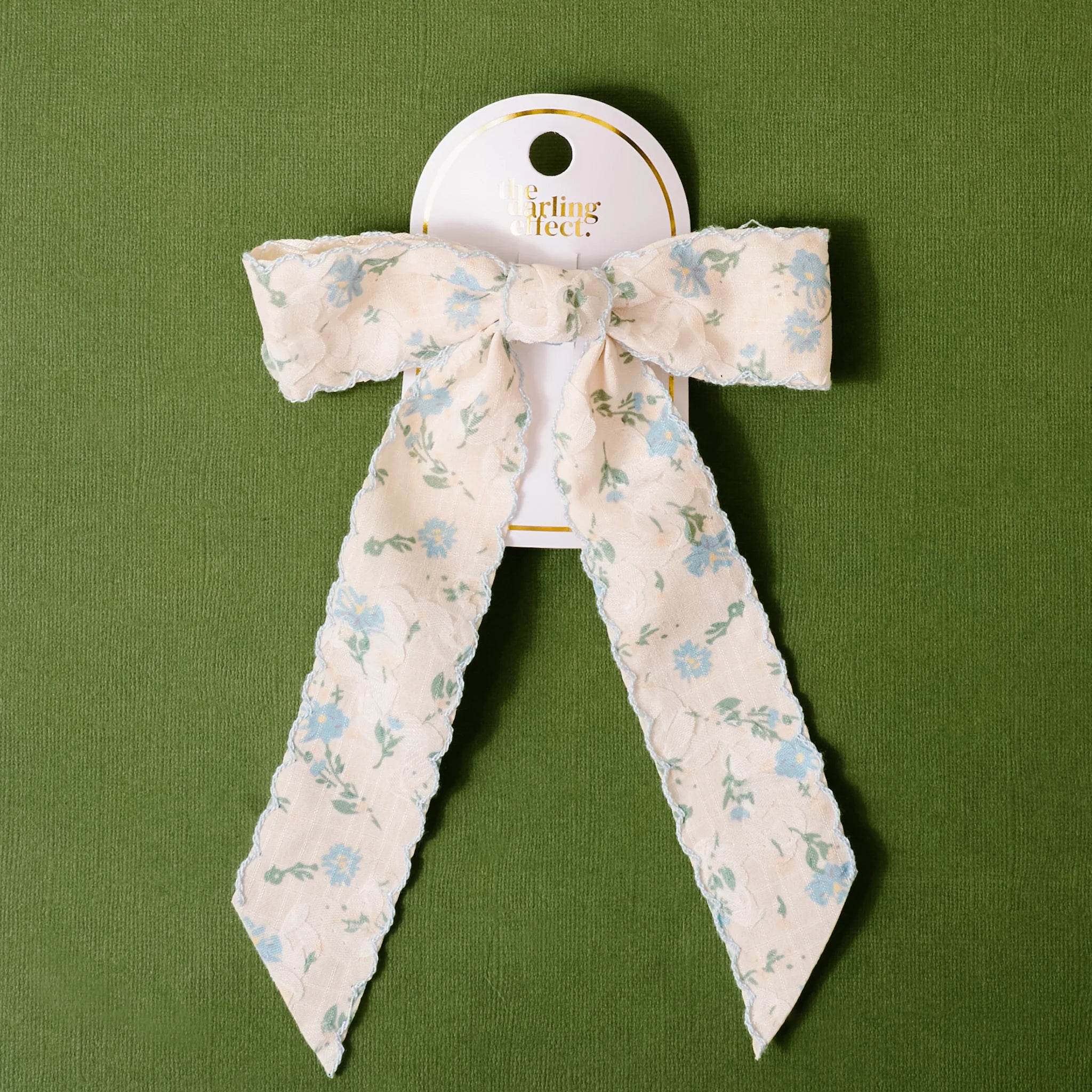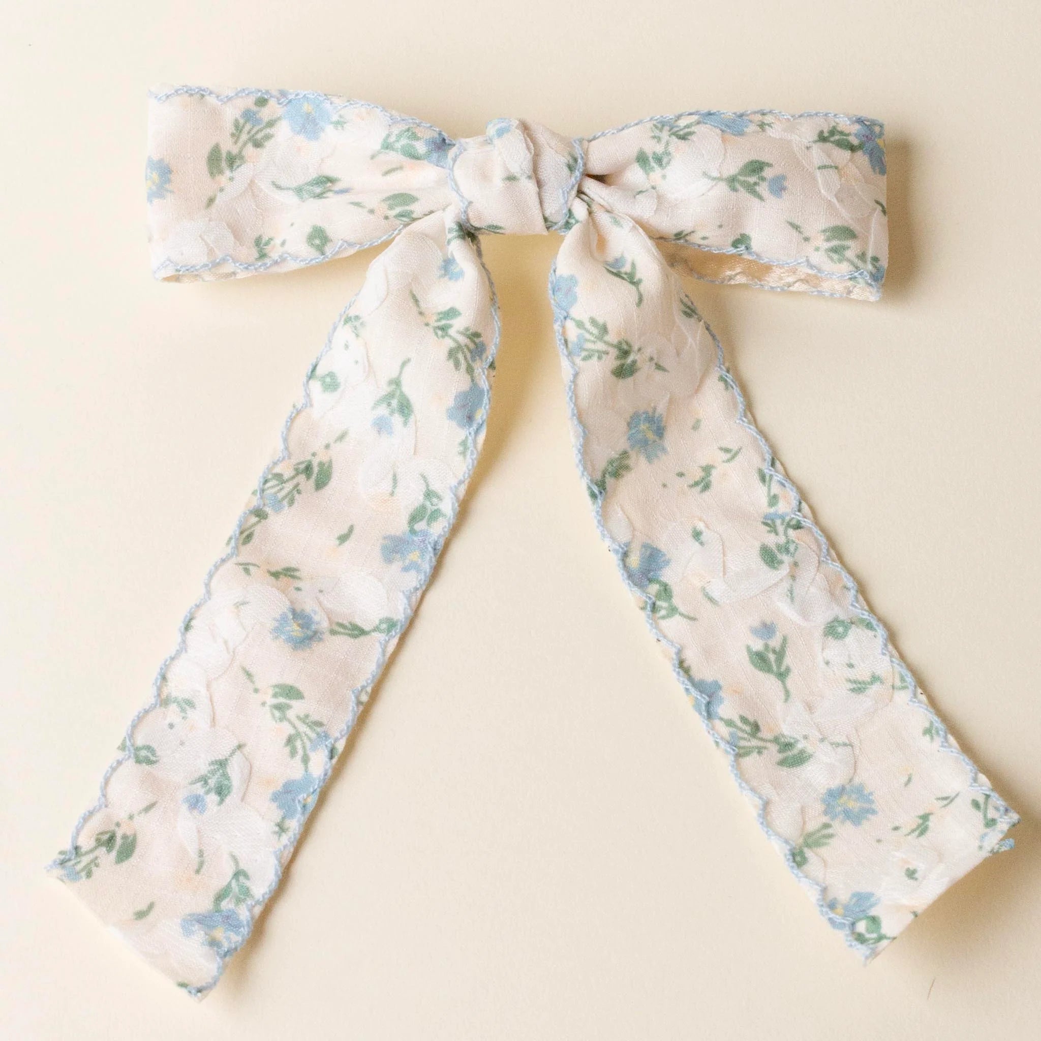 Infuse your look with a touch of timeless elegance with our Floral Hair Bow! With beautifully embellished floral details, this bow brings a feminine, refined touch to any hairstyle. The gold barrette clip closure ensures a secure and comfortable all-day hold.