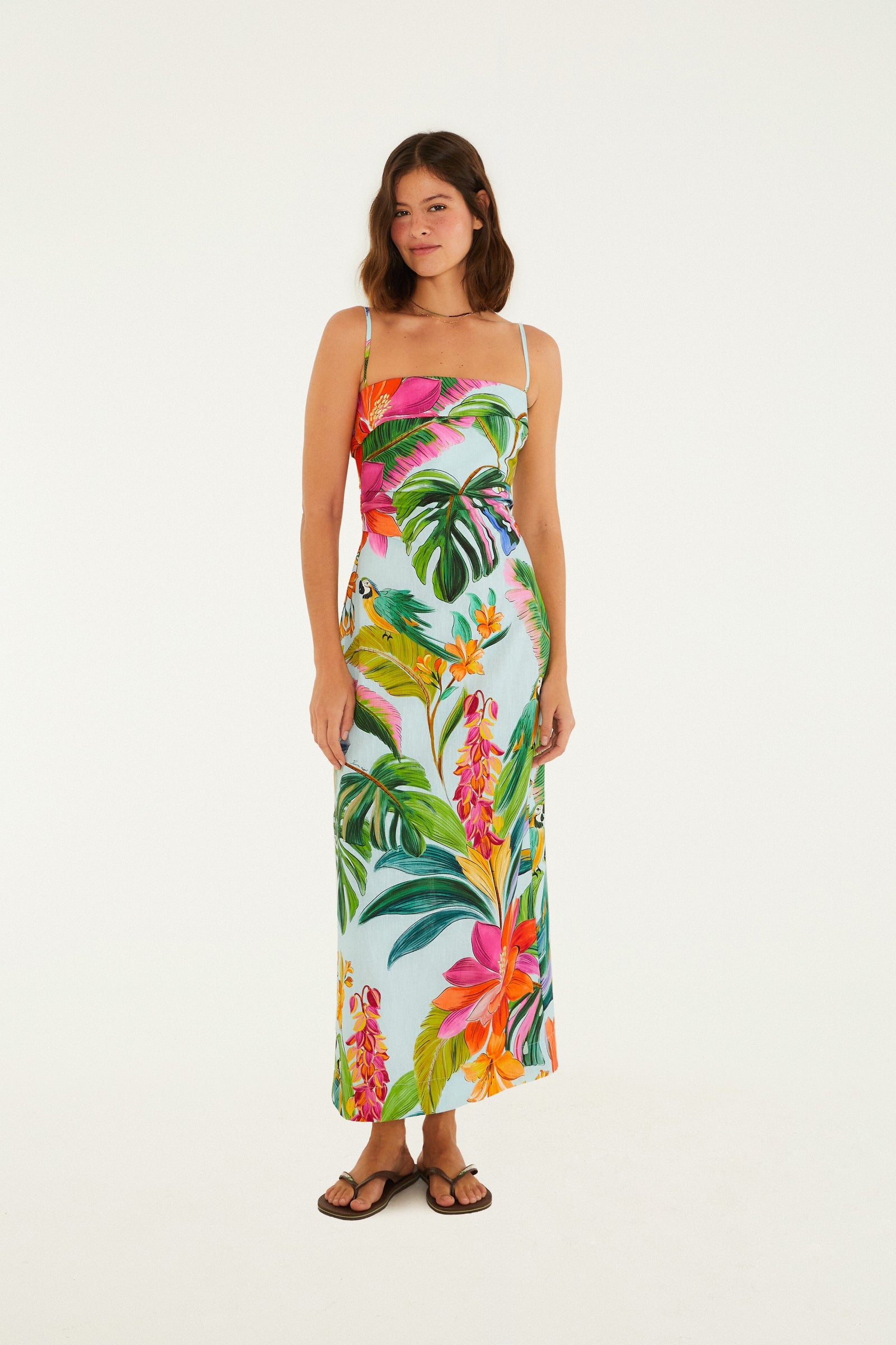 Vestido Midi Estampado Paisaje Tropical